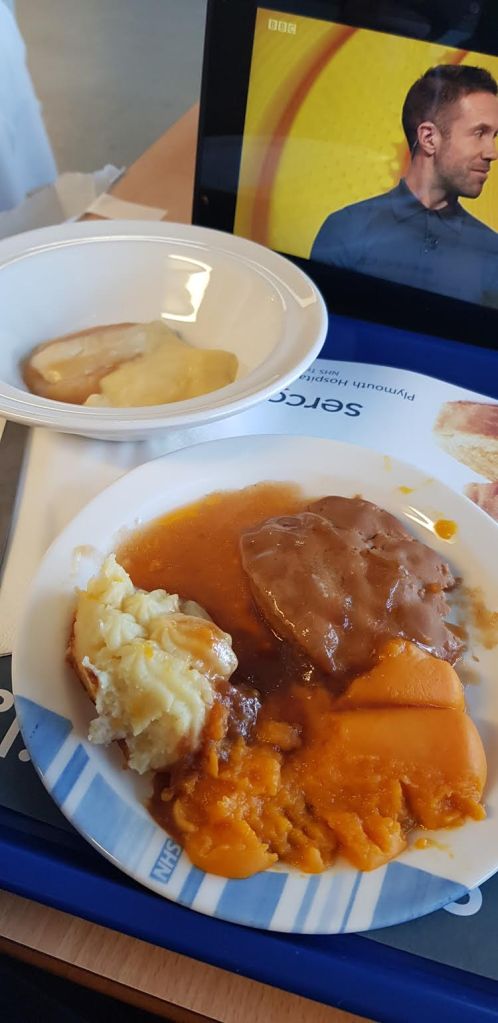 As the days went by, I slowly became more normal. My observations were good, my drains were removed one by one after careful monitoring and the day finally came when my last drain was removed. I left the treatment room with nothing but the PICC line in my arm and it felt strange. I took myself off to Marks and Spencer to treat myself to some nice tea bags and peppermint tea to settle my stomach, with no drains or tubes in sight. The pureed food was actually quite nice, weirdly moulded into shapes of what it actually was. A few mouthfuls and I was painfully full but I felt that I should eat more than I could. One evening I’d eaten so much, I was in terrible pain and I began to worry. After a visit from the on call doctor who diagnosed simple over eating, I was only given half portions, under strict instructions from my medical team! On Friday 11thJanuary, one of the consultant team told me that I should try and eat something with lumps in. This again would be another psychological battle but one that I over came and won. I was going into what would be my last weekend in hospital, unaware that on Monday 14thJanuary I would be discharged…..